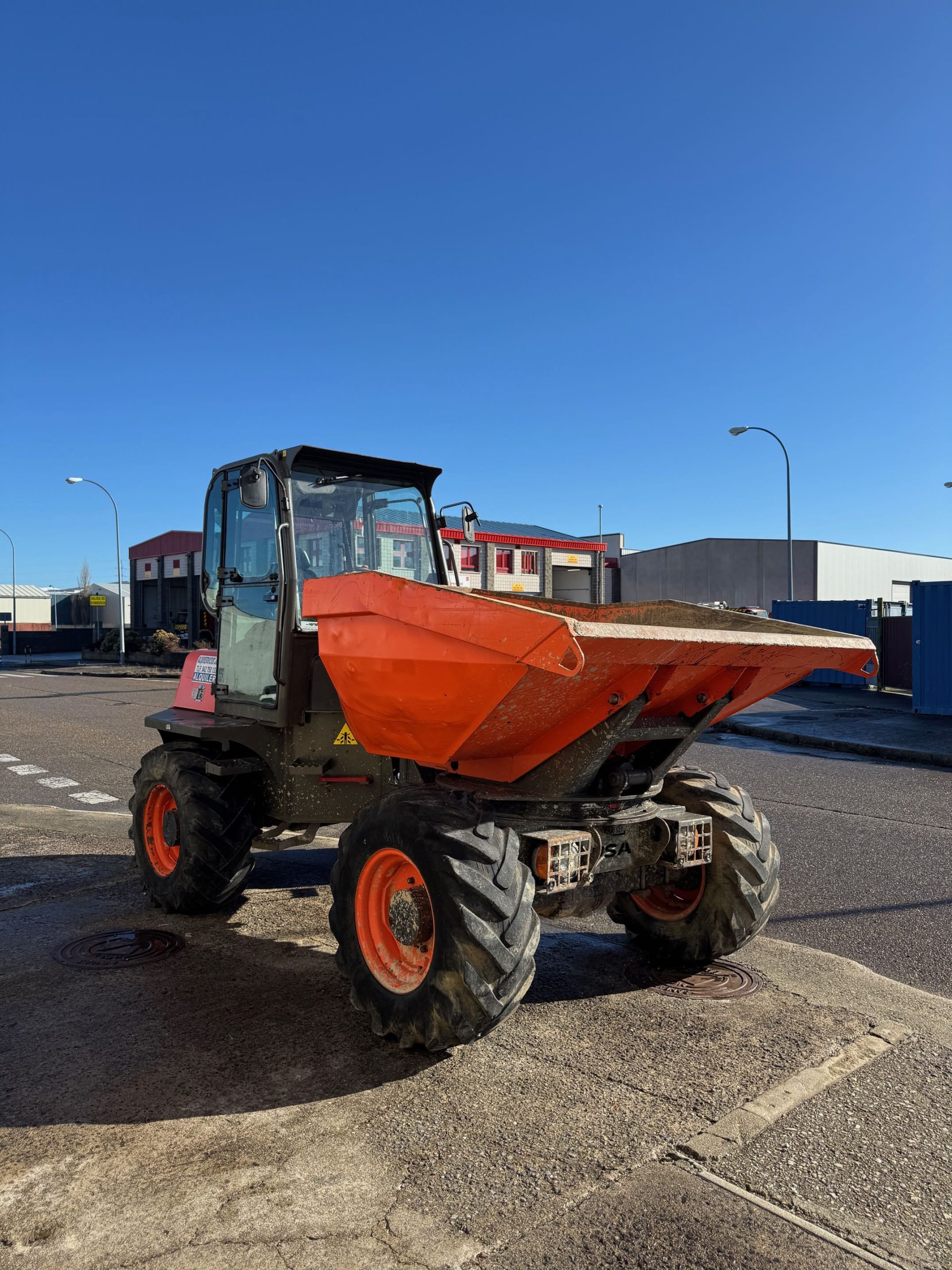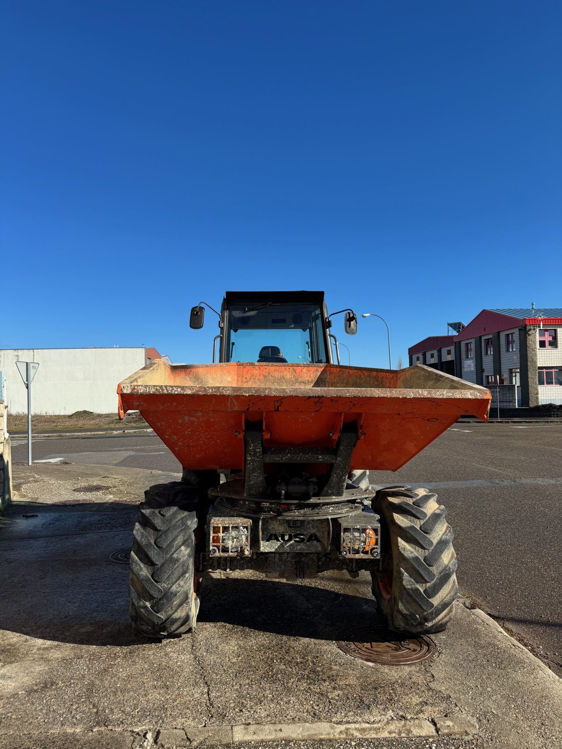 Dumper articulado AUSA de 6 t en excelente estado. Perfecto para obra media y pesada, con cabina confortable equipada con calefacción y cámara trasera para mayor seguridad. Poco uso (2.500 h). Listo para trabajar.
